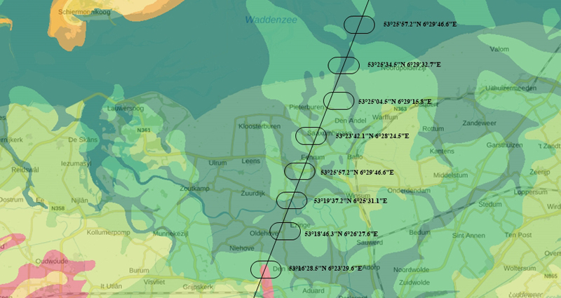 Door dit dynamische landschap hebben we een rechte lijn getrokken waar langs we op evenredige afstand een grondmonster hebben genomen. Van Noordhorn op de stuwwal tot in de kwelder nabij Westernieland.